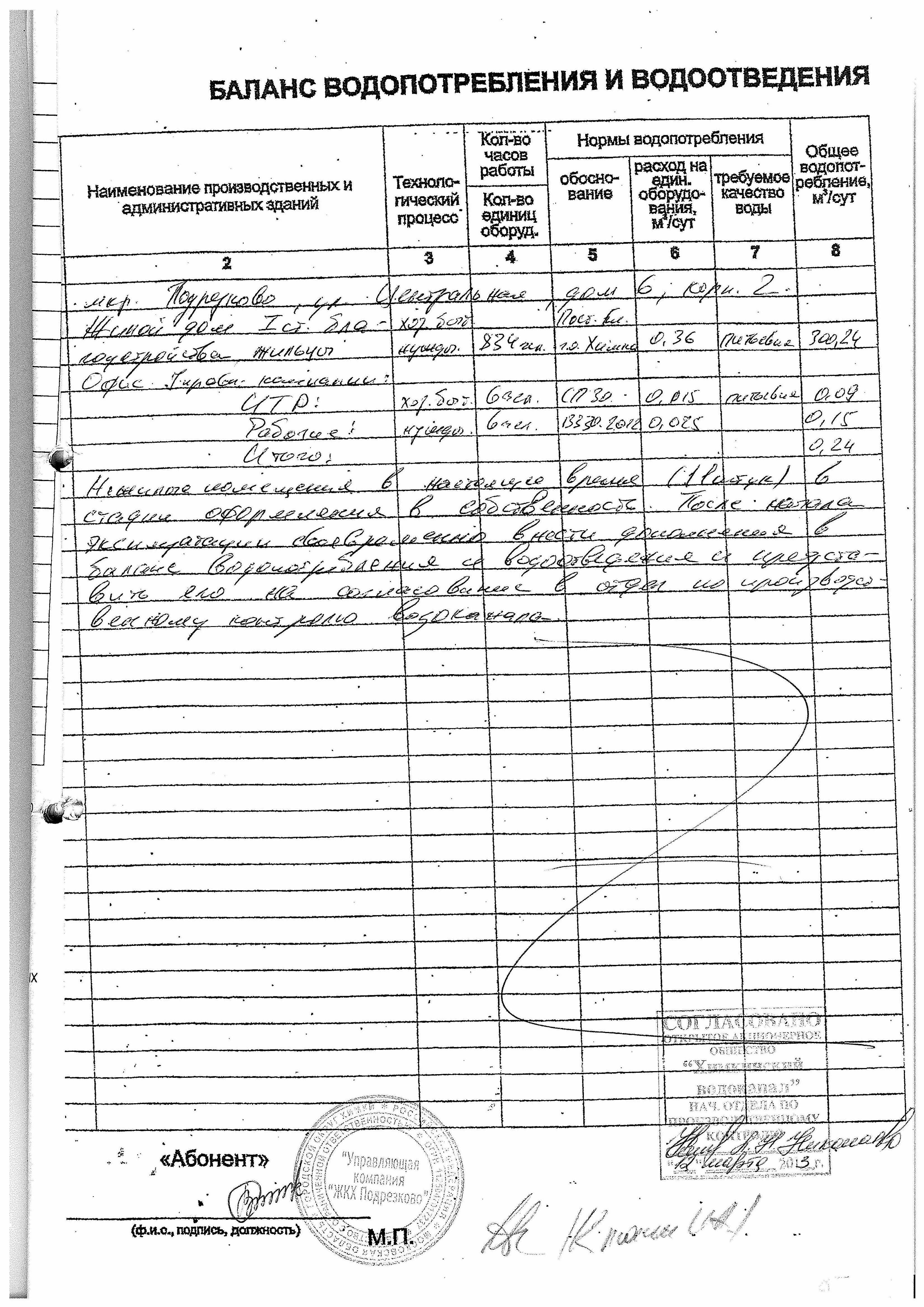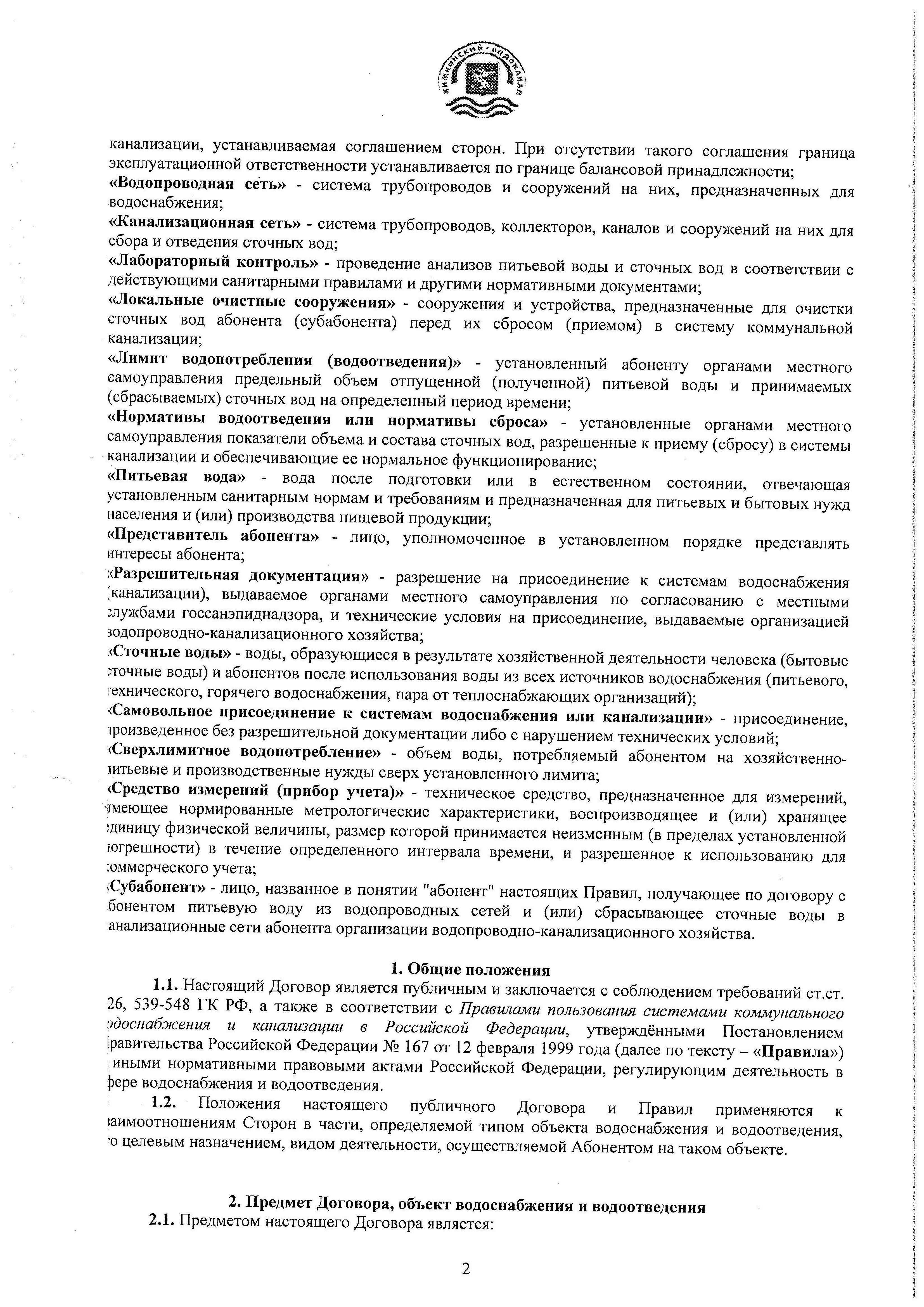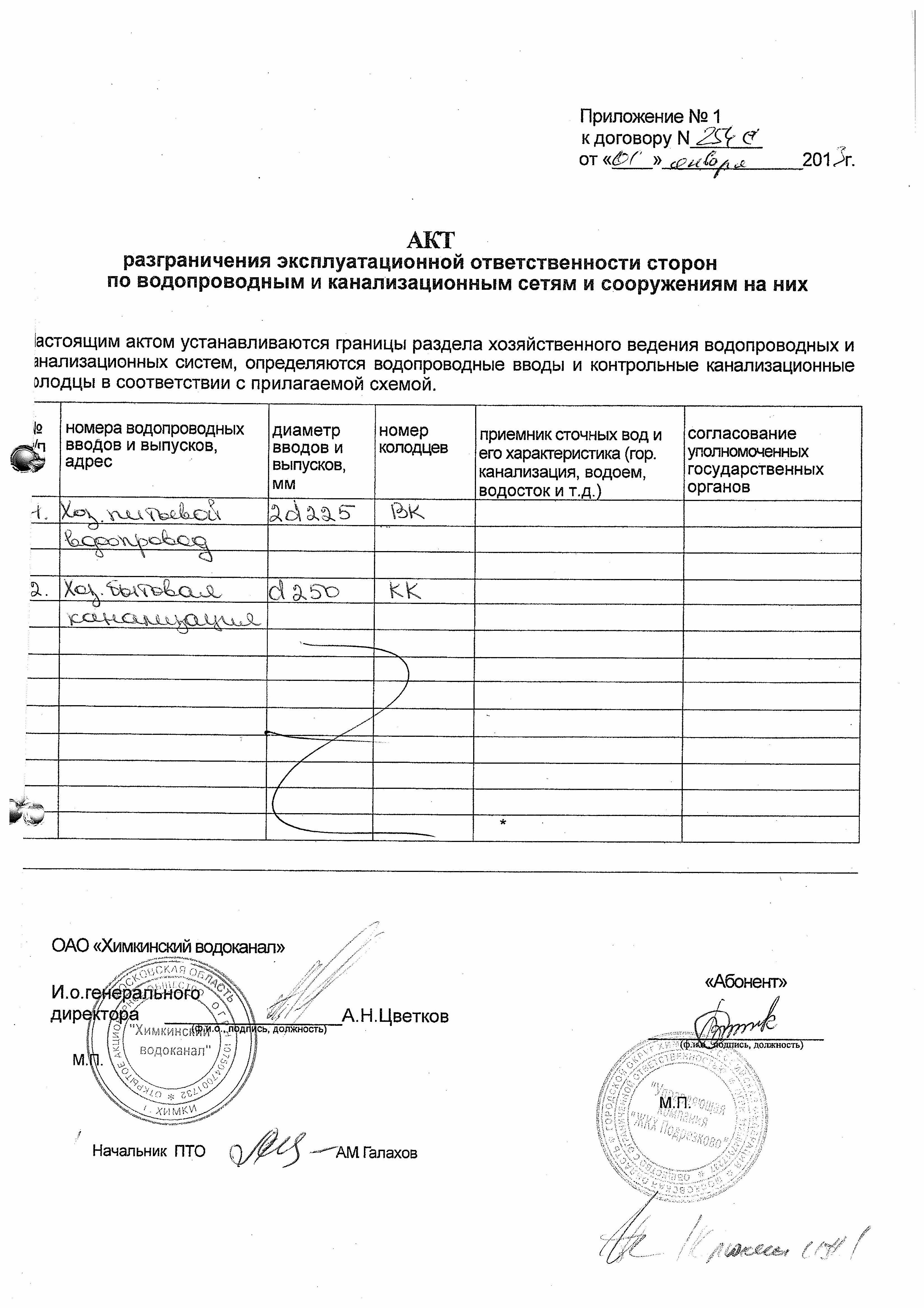 Договор водоснабжения и водоотведения ул. 1-я Лесная, д. 10 корп.1