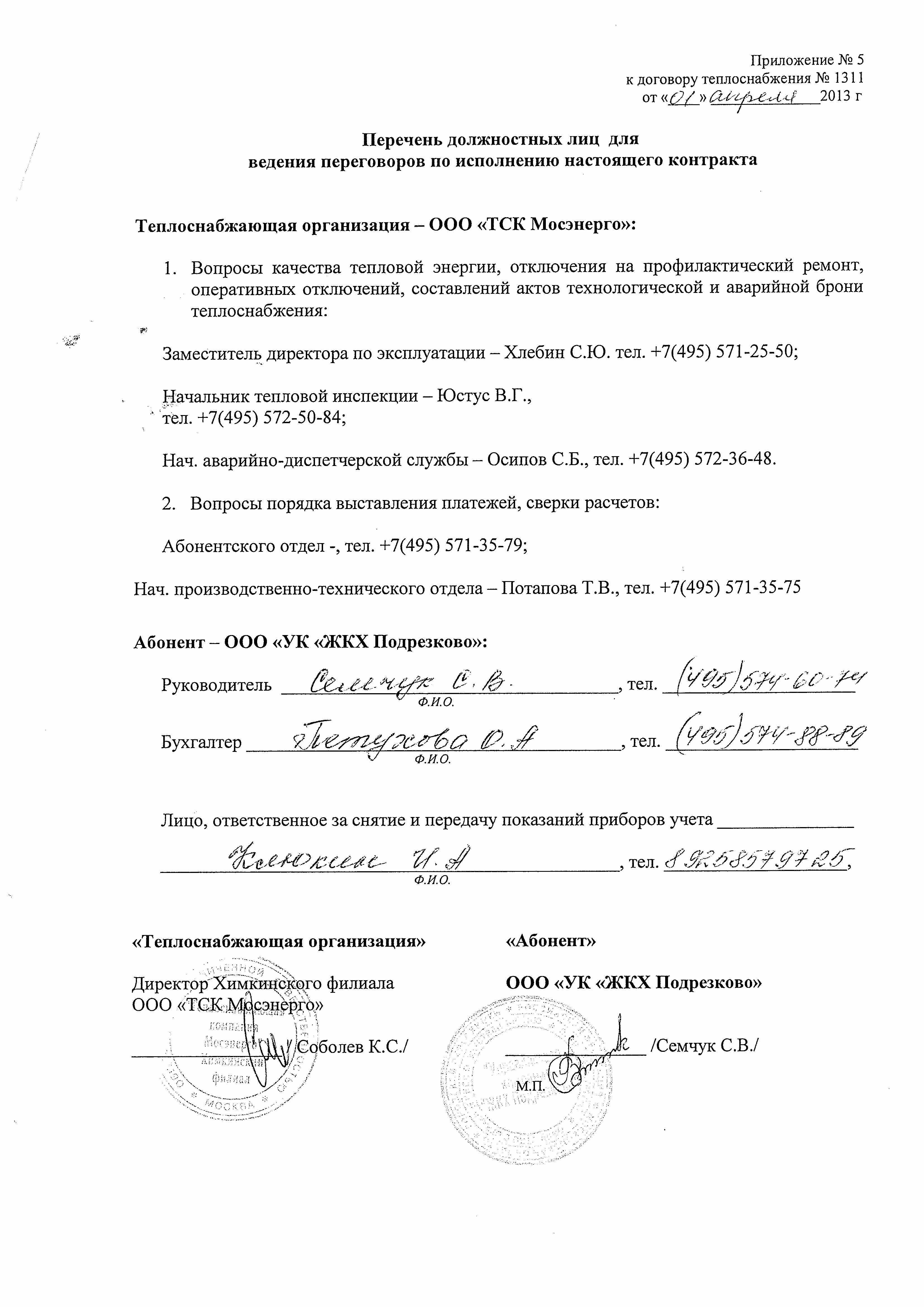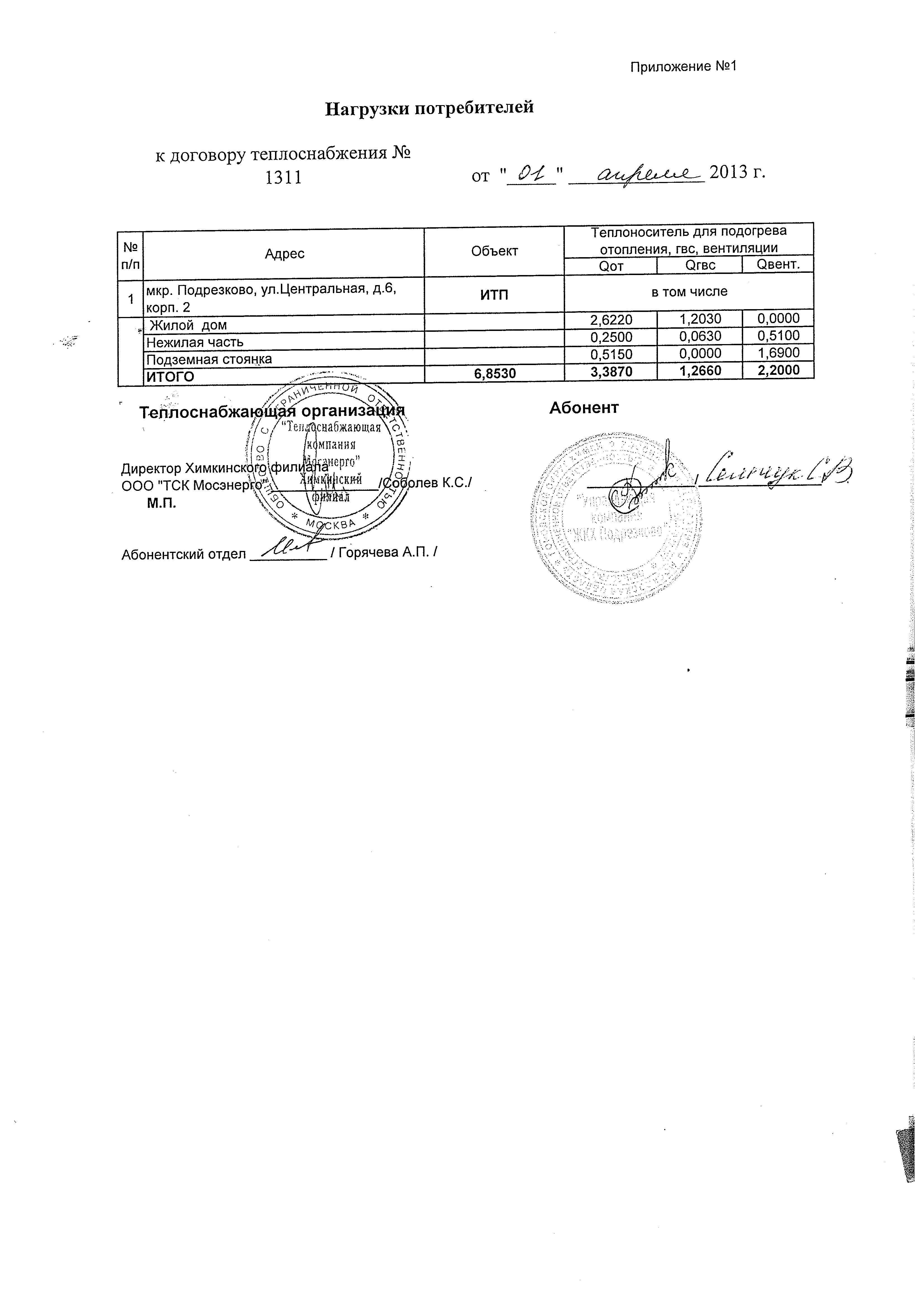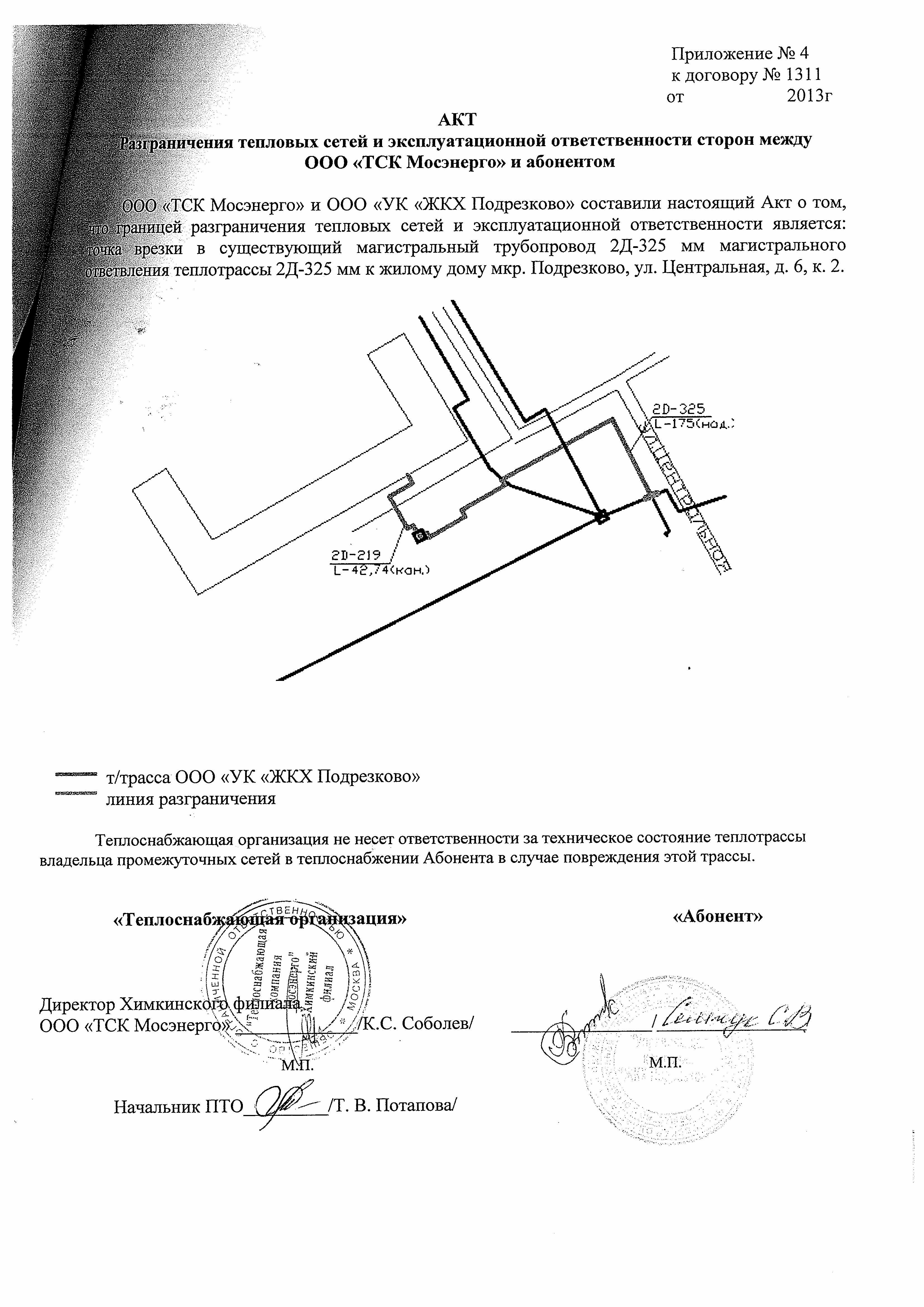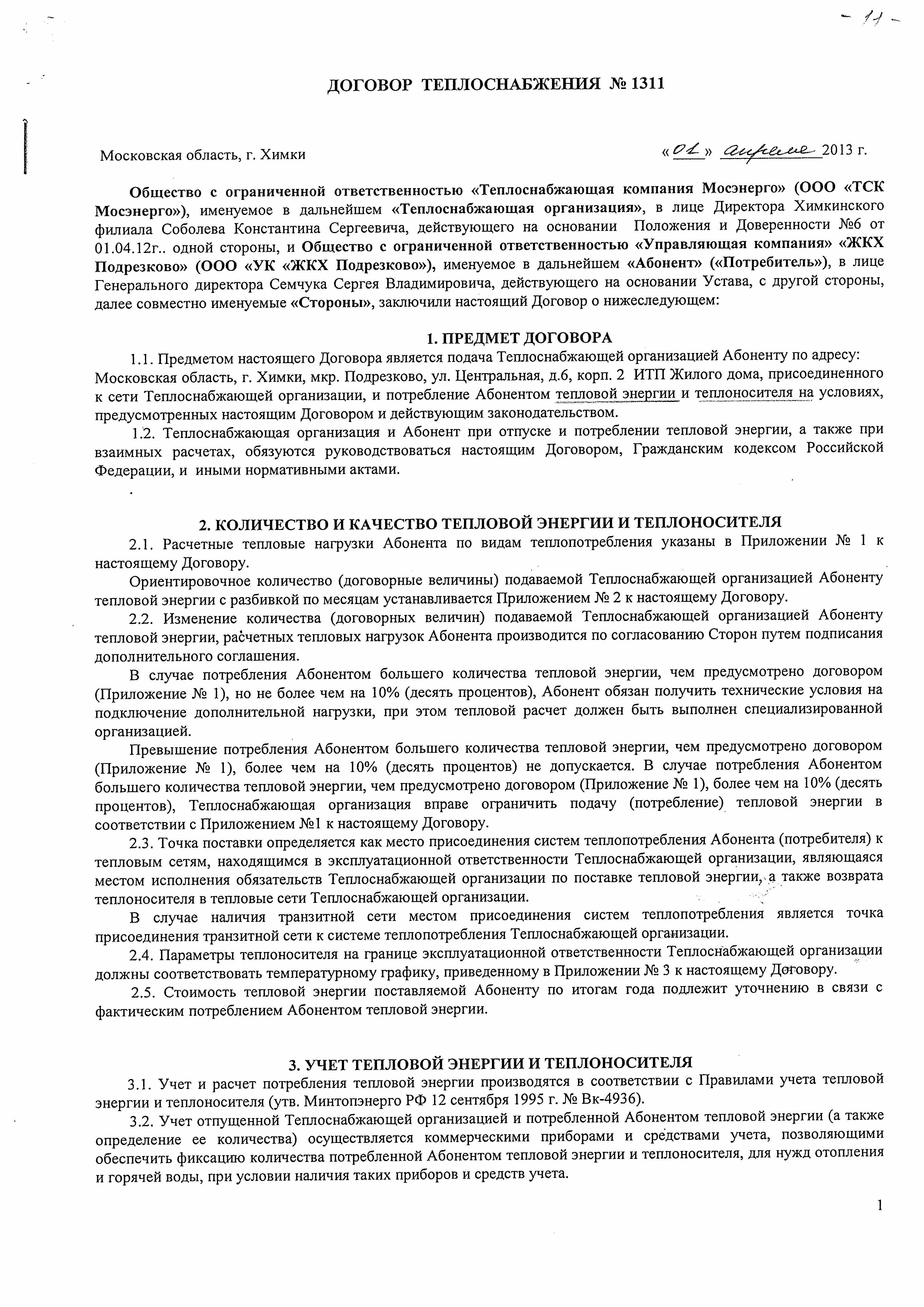 Договор Теплоснабжения от 01.01.2014 № 1311 между ООО "Теплоснабжающая компания Мосэнерго" (ООО ""ТСК Мосэнерго") и ООО "УК ЖКХ "Подрезково"