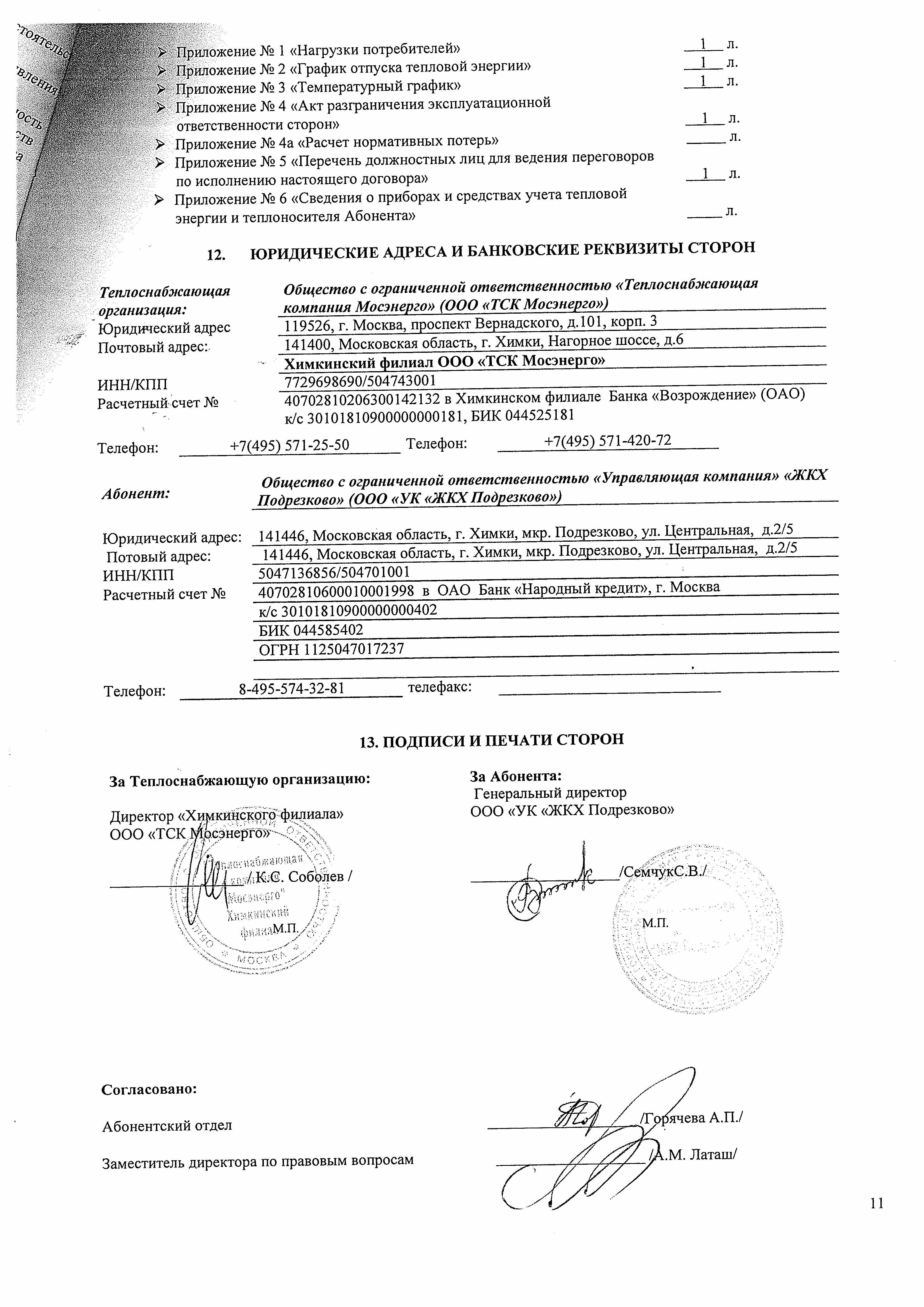 Договор теплоснабжения ул. 1-я Лесная, д. 10 корп.1