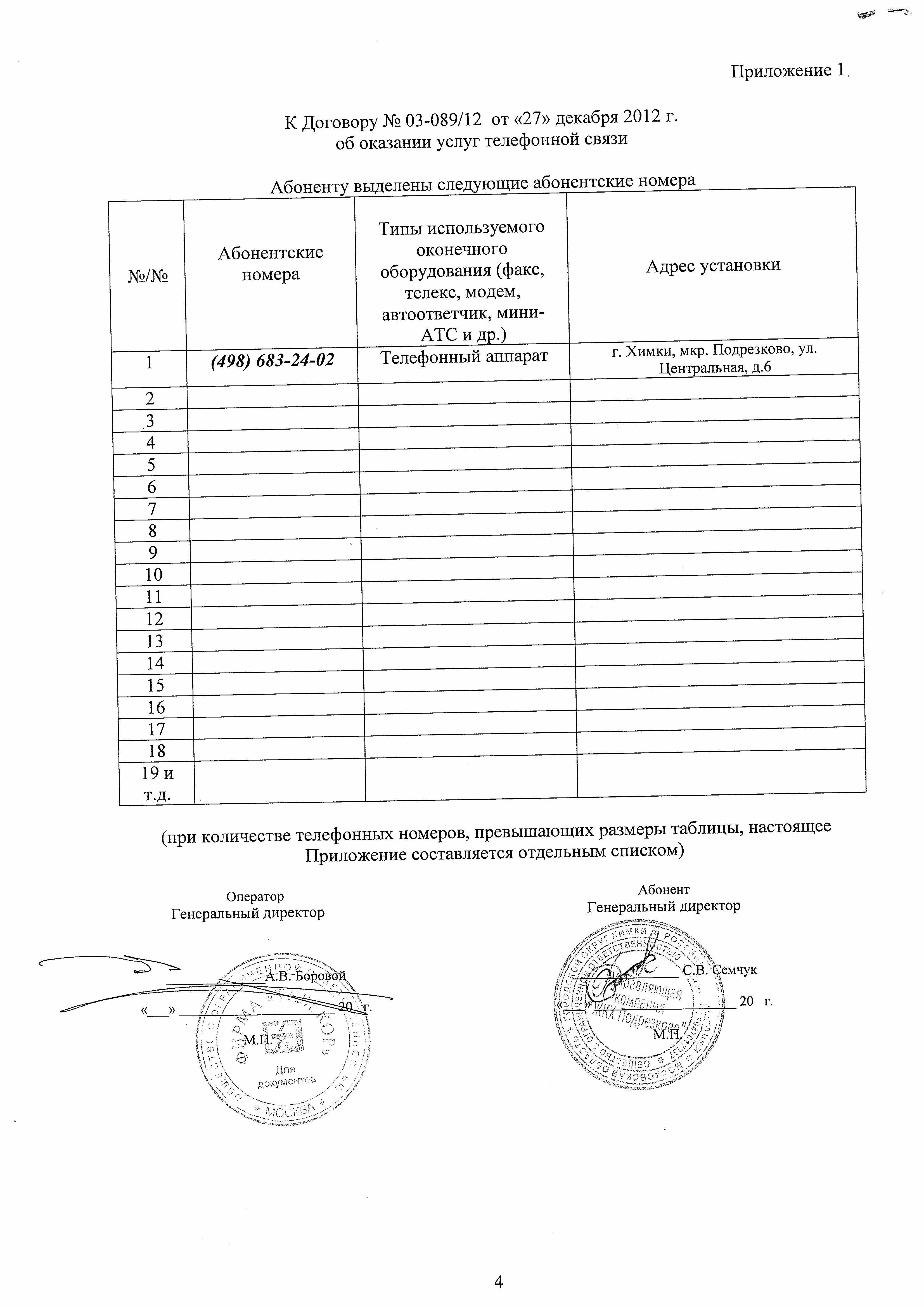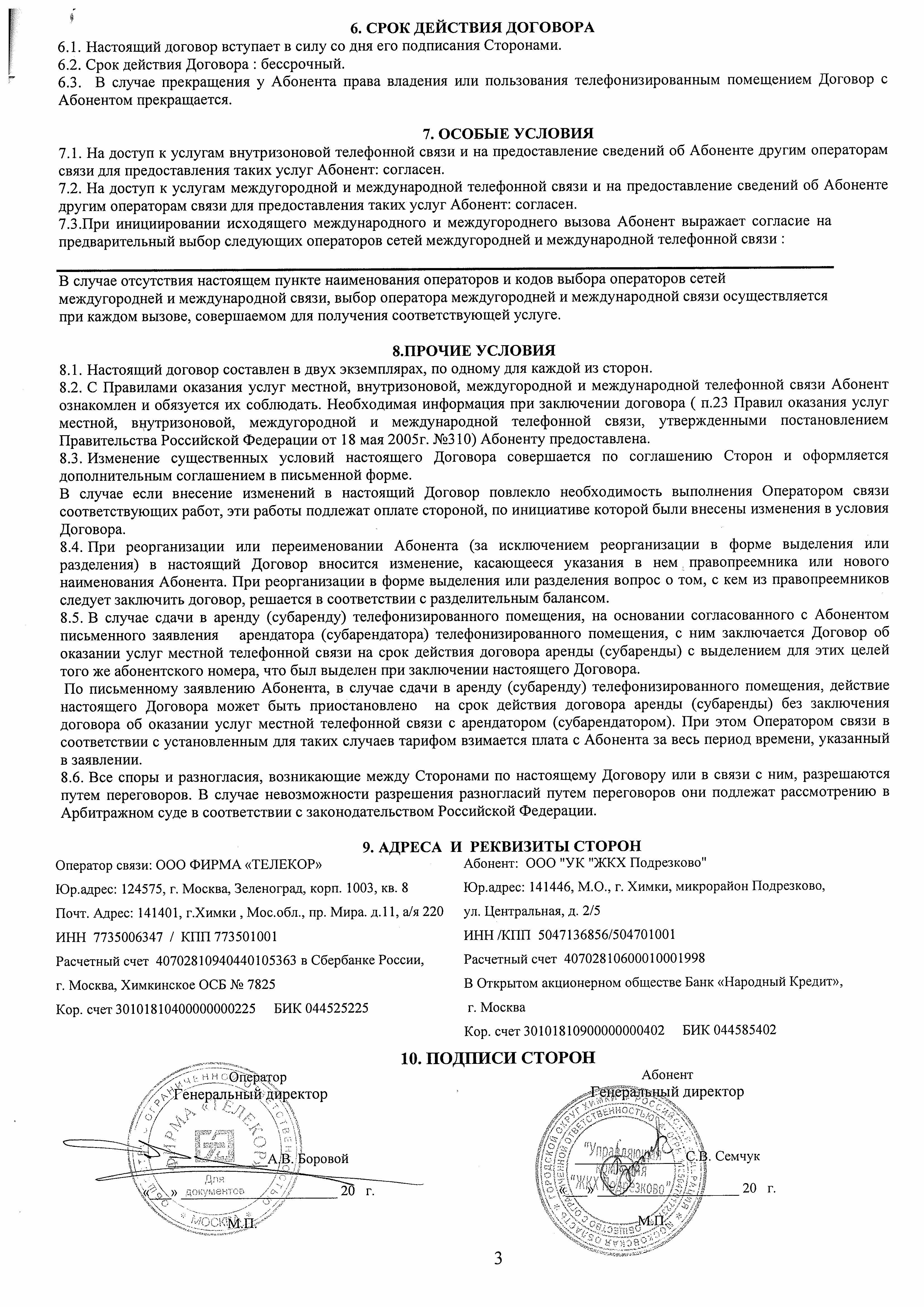 Договор между ООО Фирма "Телекор" и ООО "УК ЖКХ "Подрезково" от 27.12.2012 № 03-089/12 "Об оказании услуг местной телефонной связи"