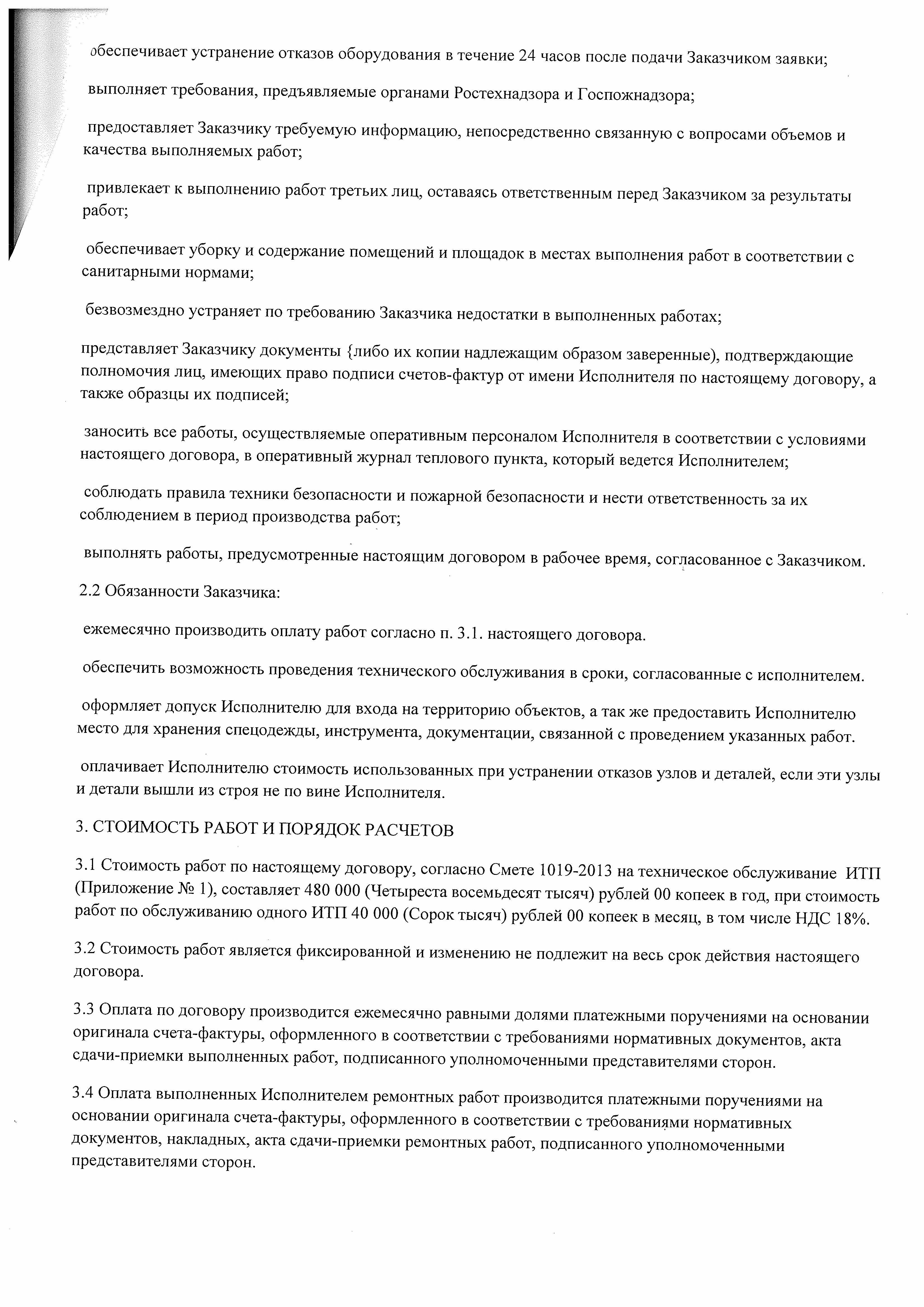 Договор № ТО-ИТП-013/14-4Г на выполнение работ по техническому обслуживанию инженерного оборудования ИТП,УУТЭ от 17 марта 2014 года